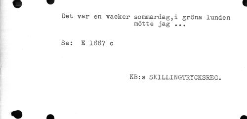 //// Det var en vacker sommardag,i gröna lunden //// mötte jag ... //// Se: E 1687 c //// KB:s SKILLINGTRYCKSREG. ////