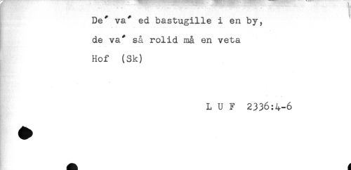 //// De* va* ed bastugille i en by, //// de va* så rolid må en veta //// Hof (Sk) //// L U F 2336:4-6 ////
