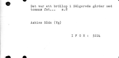 //// Det var ett bröllop i Sälgereds gårdar med //// tommax fat... s.o //// Askims Råda (Vg) //// I F G H : 5224 //// ! ////