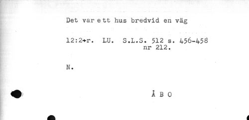 //// Det var e tt hus bredvid en väg //// ^ .... .< ^ //// 12:2+r. LU. S.L.S. 512 s. 456-458 //// nr 212. //// N. ////