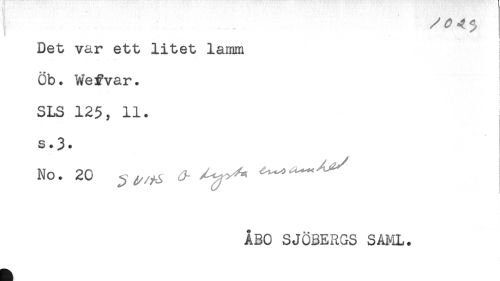 //// Det var ett litet lamm //// Öb. Wefvar. //// SLS 125, 11. //// s.3. //// No. 20 ^^ ^ //// ÅBO SJÖBERGS SAML. ////