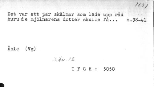 //// Det var ett par skälmar som lade upp råd //// huru de mjölnarens dotter skulle få... s.38-41 //// Åsle (Vg) //// -j ^ /-g //// I F G H : 5050 //// r //// i ////