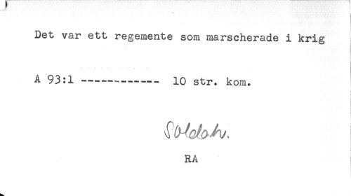//// Det var ett regemente som marscherade i krig //// i //// ' ' . . r . < //// A 93:1---- 10 str. kom. //// 4 //// i //// t //// f //// RA ////