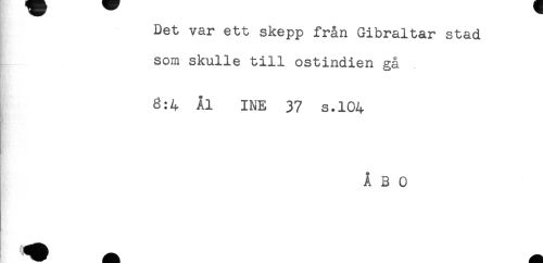 //// Det var ett skepp från Gibraltar stad //// som skulle till ostindien gå //// 3:4 Ål INE 37 s.104 //// ÅBO ////