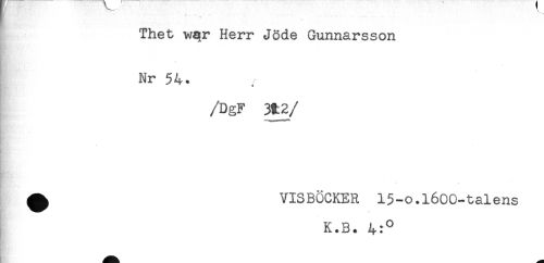 //// Thet war Herr Jöde Gunnarsson //// Nr 54. //// /DgF 3t2 //// /! ^ * - . , //// ^ VISBÖCKER 15-o.l600-talens //// K.B. 4:° ////