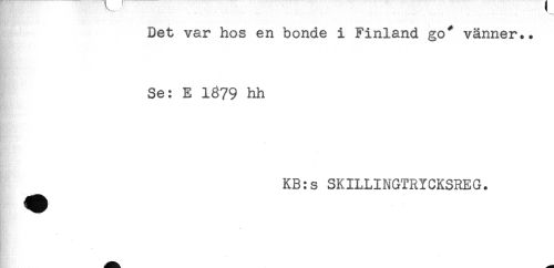 //// Det var hos en bonde i Finland go* vänner.. //// Se: E 1879 hh //// KB:s SKILLINGTRYCKSREG. ////