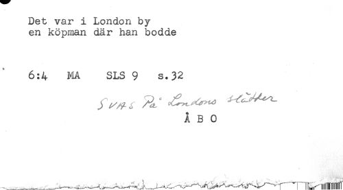 //// Det var i London by //// en köpman där han bodde //// 6:4 MA SLS 9 s.32 //// .) /i' ^ ^ ' ' //// ÅBO ////