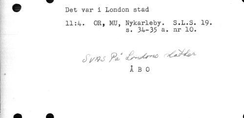 //// W Det var i London stad //// 11:4. OR, MU, Nykarleby. S.L.S. 19. //// s. 34-35 a. nr 10. //// Å B 0 ////