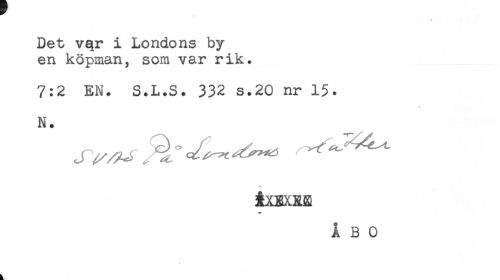 //// ** //// Det vqr i Londons by //// en köpman, som var rik. //// 7:2 EN. S.L.S. 332 s.20 nr 1$. //// * //// N. //// iXEXRE ////