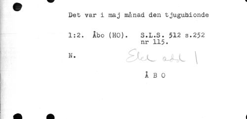 //// Det var i maj månad den tjuguhionde //// 1:2. Åbo (HO). S.L.S. 512 s.252 //// nr 115. //// ÅBO ////