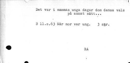 //// ^ Det var i mammas unga dagar dom dansa vals //// i på annat sätt... //// - //// ^ B 11.s.63 När mor var ung. 3 sgr. ////