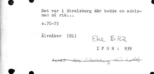 //// Det var i Stralsburg där bodde en adels- //// ! man så rik... //// - //// s.70-75 //// Mvsåker (Hl) ^ ^^ //// K //// I F G H : 939 ////