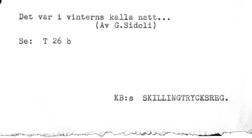 //// Det var i vinterns kalla natt... //// (Av G.Sidoli) //// Se: T 26 b //// KB:s SKILLINGTRYCKSREG. ////
