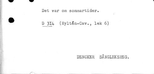 //// Det var om sommartider. //// ^ D 314 (Hyltén-Cav., lek 6) //// DENCKER SÅNGLEKSREG. ////