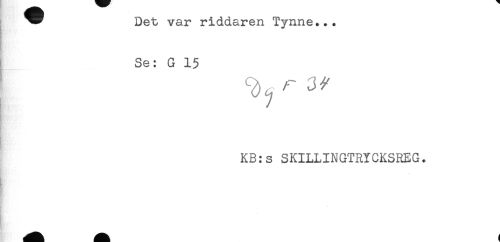//// ^^ Det var riddaren Tynne... //// Se: G 15 //// I ^ ^ ^ //// KB:s SKILLINGTRYCKSREG. //// ! //// Hg!' ////