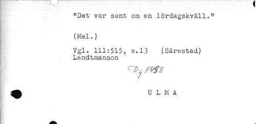 //// "Det var sent om en lördagskväll." //// . //// (Mel.) //// Vgl. 111:515, s.13 (Särestad) //// Landtmanson //// ^ U L M A ////