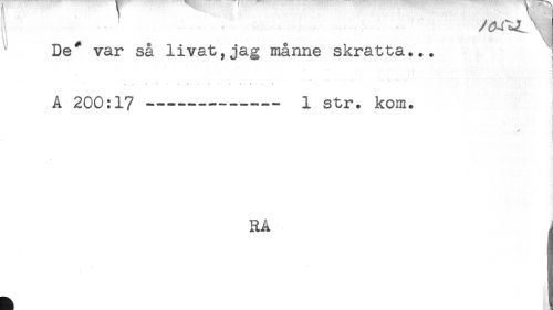 //// ' V' //// ti TH //// ^ De* var så livat,jag månne skratta... ] //// . ; //// - < . j - t . i . S //// A 200:17 --- 1 str. kom. //// RA j ////
