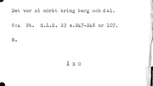 //// Det var så mörkt kring berg och dal. //// 6:4 PÅ. S.L.S. 23 s.247-248 nr 107. ^ //// N. //// % //// ÅBO ! //// ) ////