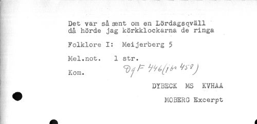 //// & . . . - - - - .. ." - - ' ^ * //// Det var så^nt om en Lördagsqväll //// då hörde jag körkklockarna de ringa //// s //// Folklore 1: Meijerberg 5 //// Mel.not. 1 str. //// DYBECK MS KVHAA //// I ^ MOBERG Excerpt ////