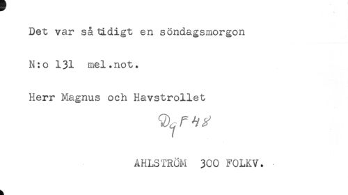 //// Det var så tidigt en söndagsmorgon //// N:o 131 mel.not. //// Herr Magnus och Havstrollet //// AHLSTROM 300 FOLKV. ////