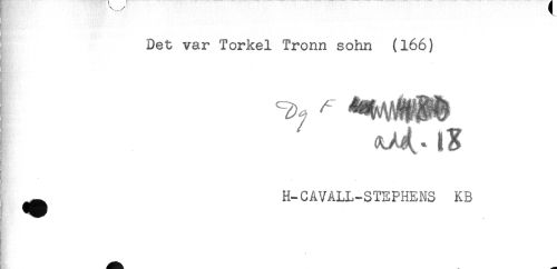 //// Det var Torkel Tronn sohn (166) //// ^ H-CAVALL-STEPHENS KB ////