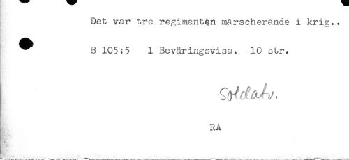 //// Det var tre regimentån marscherande i krig.. //// t' //// Baf ' //// ^^ B 105:5 1 Beväringsvisa. 10 str. //// * //// ! RÅ //// M^^** ---i— t ////