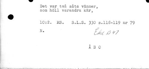 //// Det var två såta vänner, //// som höll varandra kär, //// 10:2. MS. S.L.S. 330 s.113-119 nr 79 //// ÅBO //// -t.-—.-—t-— ————---——- - ___ . * _ .. ^ ^ ___ _____—^_____—___——. * —--——____ ——___— - ////