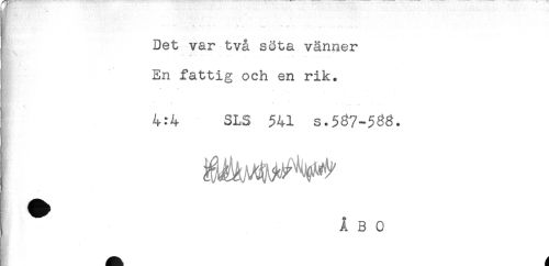 //// v ' ** *" .. - - . .. - . v //// Det var två söta vänner //// I En fattig och en rik. //// ** ** //// ! 4:4 SLS $41 s.567-388. //// } ^ ÅBO ////
