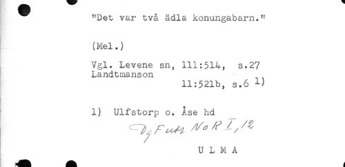 //// ^Det var två ädla konungabarn.*' //// (Mel.) //// - //// Vgl. Levene sn, 111:$14, s.27 //// Landtmanson //// 11:521b, s.6 1) //// 1) Ulfstorp o. Åse hd //// i ^^ ^ ^ ^ //// U 1 M A ////