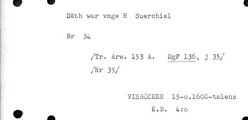 //// Däth war vnge H Suerchiel //// Nr 34 //// /Tr. Arw. 153 A. DgF 1%, j 35 //// //Nr 35 //// /VISBÖCKER 15-o.l60G-talens //// ^ K.B. 4:o ////