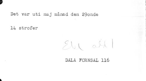 //// r //// t //// i //// Det var uti maj månad den 29onde //// < //// 14 strofer i //// < //// DALA FORNSAL 116 ////