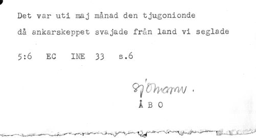 //// Det var uti maj månad den tjugonionde //// då ankarskeppet svajade från land vi seglade //// - //// 5:6 EC INE 33 s.6 //// ÅBO ////