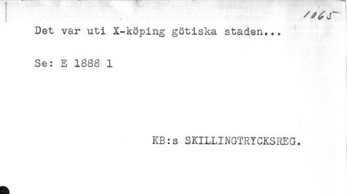 //// Det var uti X-köping götiska staden... //// f //// < //// Se: E 1333 1 //// ? //// KB:s SKILLINGTRYCKSREG. //// * ////