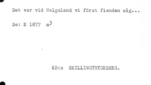//// Det var vid Helgoland vi först fienden såg... //// Se: E 1877 m3 //// < //// KB:s SKILLINGTRYCKSREG. ////