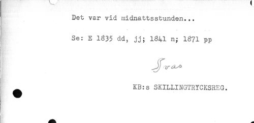 //// Det var vid midnattsstunden... //// . * * * * . //// Se: E 1835 dd, jj; 1341 n; 13?1 pp //// ^ KB:s SKILLINGTRYCKSREG. ////