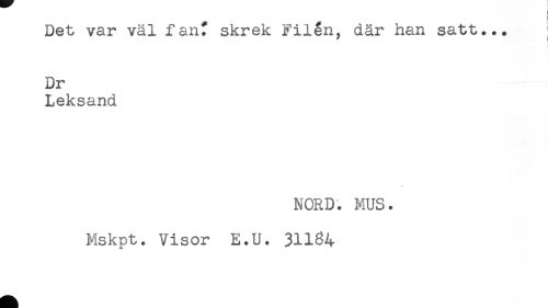 //// Det var väl fan? skrek Fil§n, där han satt... //// Dr //// Leksand //// NORD. MUS. //// Mskpt. Visor E.U. 31134 ////