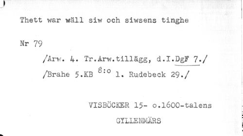 //// Thett war wäll siw och siwsens tinghe //// ! //// t //// ) //// t //// i //// ! //// Nr 79 //// /Arv*. 4. Tr.Arw.tillägg, d.I.DgF 7. //// //Brahe 5.KB 1. Rudebeck 29. //// /< //// VISBÖCKER 15- o.l600-talens //// GULENMÄRS [ //// a //// C ////