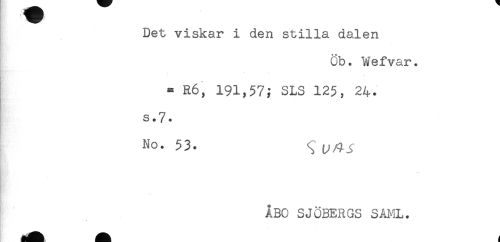 //// Det viskar i den stilla dalen //// öb. Wefvar. //// * * //// = R6, 191,57; SLS 125, 24. //// s.7. //// No. 53. S t^/^i //// Kr--'''' //// ! //// ÅBO SJÖBERGS SÅJ^IL. ////