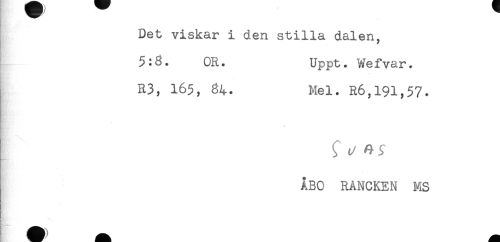 //// Det viskar i den stilla dalen, //// 5:8. OR. Uppt. Wefvar. //// - //// R3, 165, 84. Mel. R6,191,57. //// } w 3- ^ //// ÅBO RANCKEN MS ////