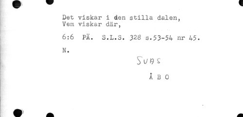 //// Det viskar i den stilla dalen, //// } . Vem viskar där, //// * * * . - //// 6:6 PÄ. S.L.S. 328 s.53-54 nr 45. //// N. //// ! S ^p ^ //// ÅBO //// K! ////