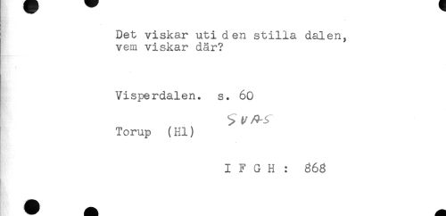 //// Det viskar uti den stilla dalen, //// vem viskar där? //// Visperdalen. s. 60 //// Torup (Hl) //// I F G H : 368 ////