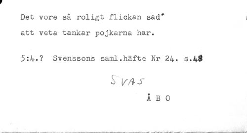 //// Det vore så roligt flickan sad* ; //// att veta tankar pojkarna har. //// 5:4.? Svenssons saml.häfte Nr 24. s.4% //// ÅBO ////