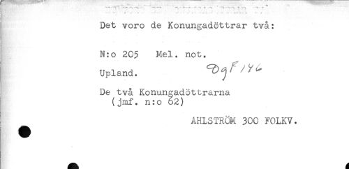 //// ! i .. f* - - - - <* - ,< //// HAi"' //// Det voro de Konungadöttrar två: //// N:o 205 Mel. not. //// [ Upland. //// De två Konungadöttrarna //// (jmf. n:o 62) //// AHLSTRÖM 300 FOLKV. ////