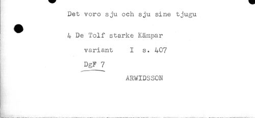 //// Det voro sju och sju sine tjugu //// ^ 4 De Tolf starke Kämpar //// variant I s. 407 //// DgF 7 //// ARWIDSSCN ////