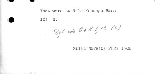 //// Thet woro tw ädla Konunge Barn //// SKILLINGTRYCK FÖRE 1700 //// . //// - ////