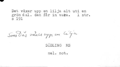 //// Det växer upp en lilja alt uti en //// gröndal, den får in va#a. 1 str. //// s 191 //// SÖDLING MS //// mel. not. ////