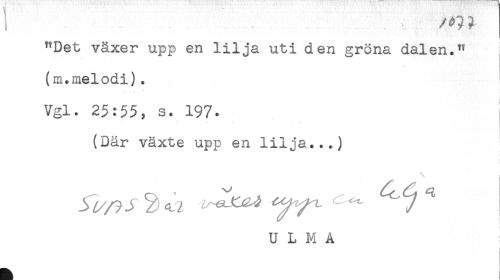 //// i . //// ^Det växer upp en lilja uti den gröna dalen." //// (m.melodi) . //// * * - //// Vgl. 25:55, s. 197. //// (Där växte upp en lilja...) //// \ ; //// U L M A ////
