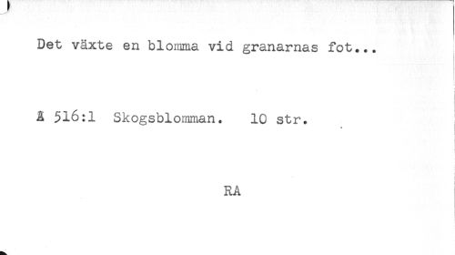 //// Det växte en blomma vid granarnas fot... //// t //// A 516:1 Skogsblomman. 10 str. //// * //// < < //// RA //// ! ////