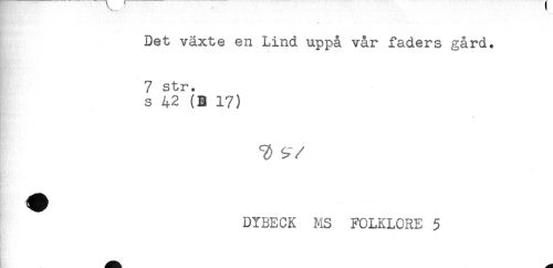 //// Det växte en Lind uppå vår faders gård. //// 7 str. //// S 42 (B; 17) //// . //// ^ //// /DYBECK MS FOLKLORE 5 ////