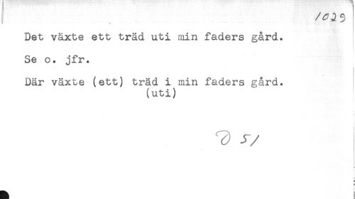 //// Det växte ett träd uti min faders gård. //// ... //// Se o. jfr. //// i //// i //// Där växte (ett) träd i min faders gård. //// (uti) //// * //// ^ y //// /t //// i ////
